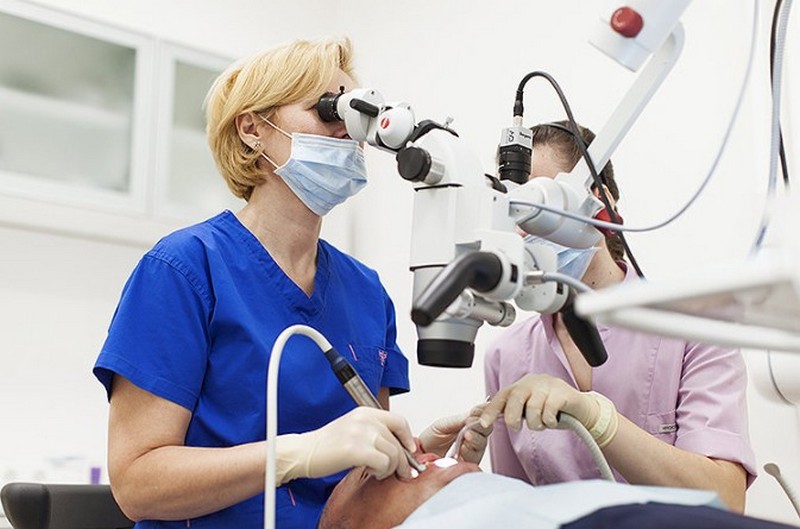 - лечение зубов под микроскопом с многократным увеличением;